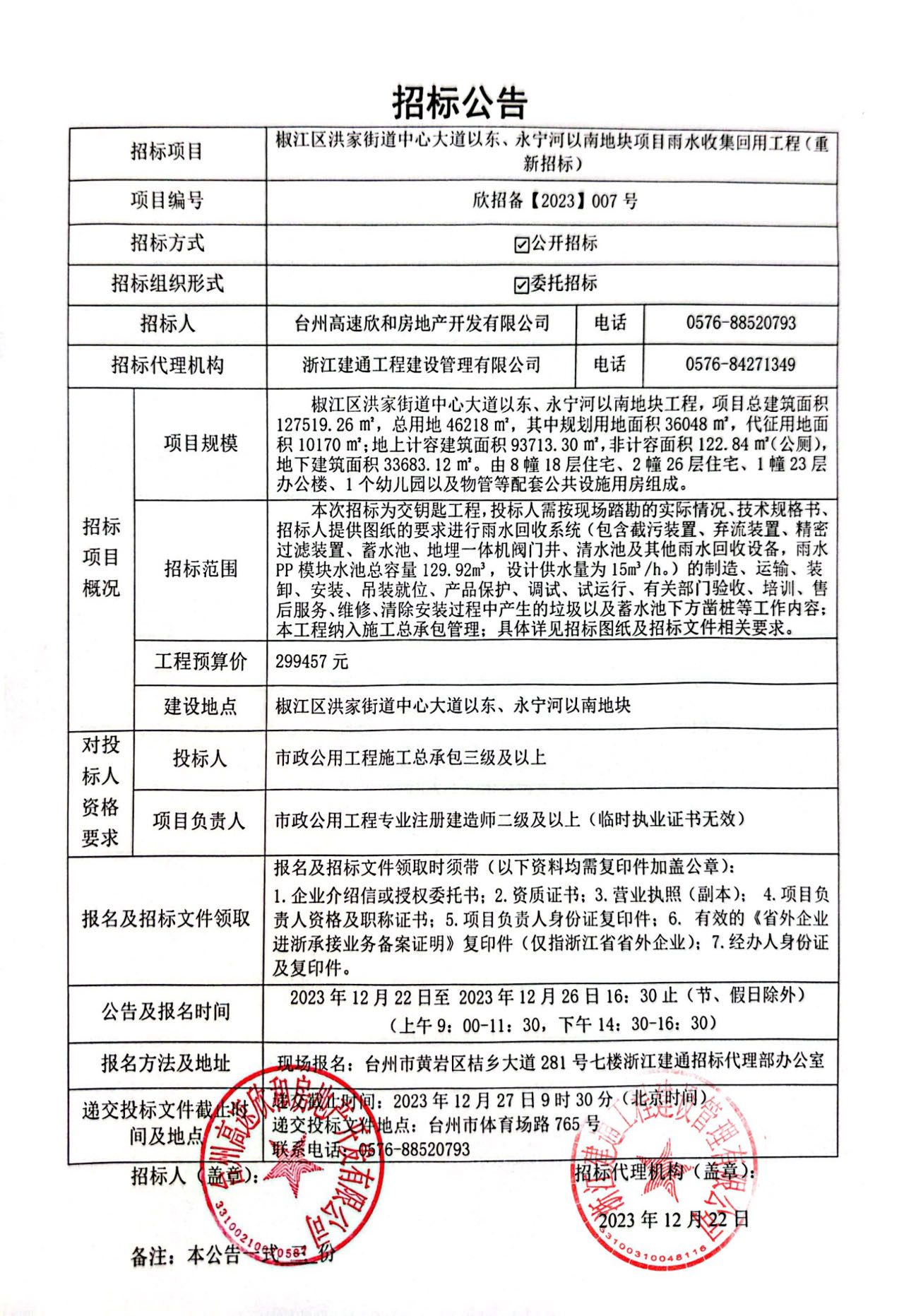 云禧悅府項目雨水收集回用工程重新招標公告