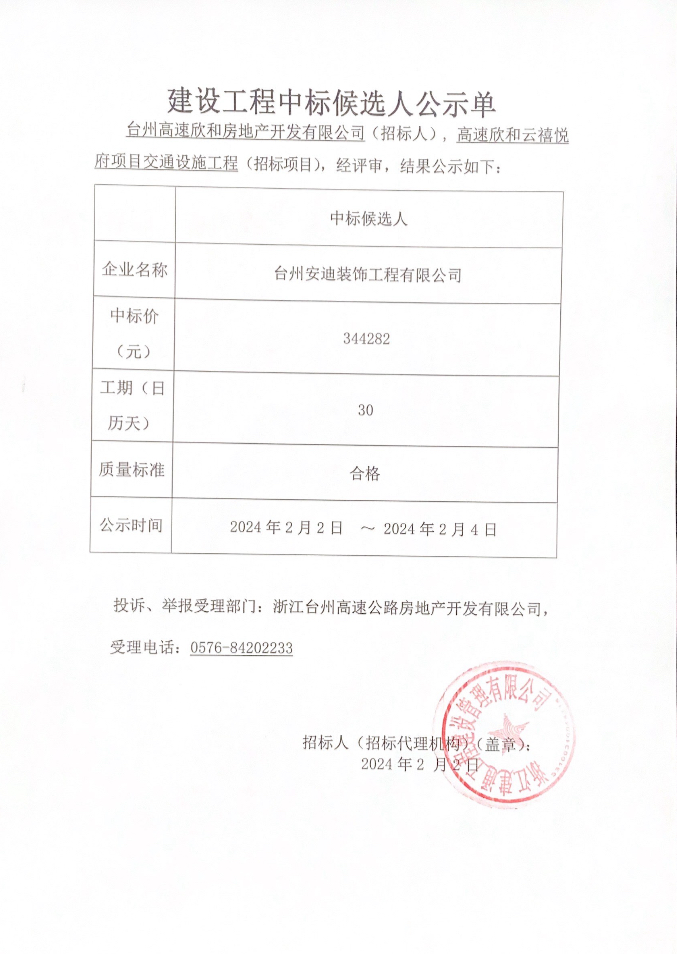 云禧悅府項目交通設(shè)施中標(biāo)公示